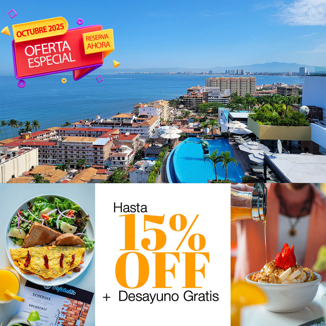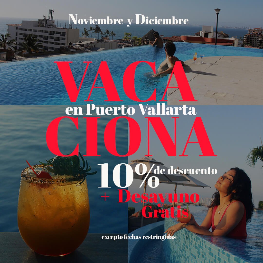 ¡Escápate al sol de Puerto Vallarta estas vacaciones! Disfruta 10% de descuento en tu estancia y despierta cada mañana con un desayuno de cortesía.