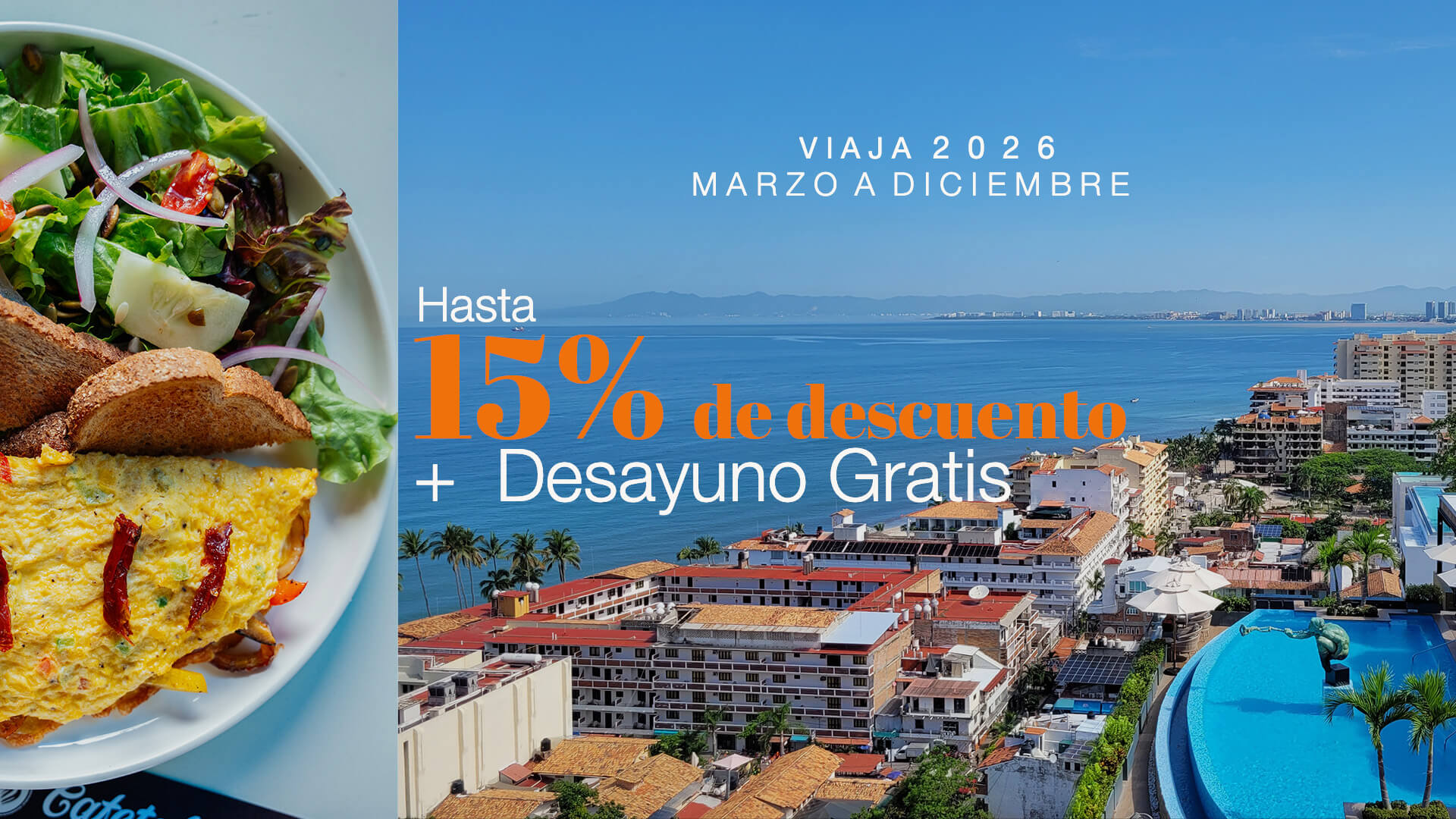 Planea con anticipación y obtén hasta 15% de descuento en tu estancia. Viaja de marzo a septiembre de 2026 con desayuno incluido, el inicio perfecto de cada mañana.