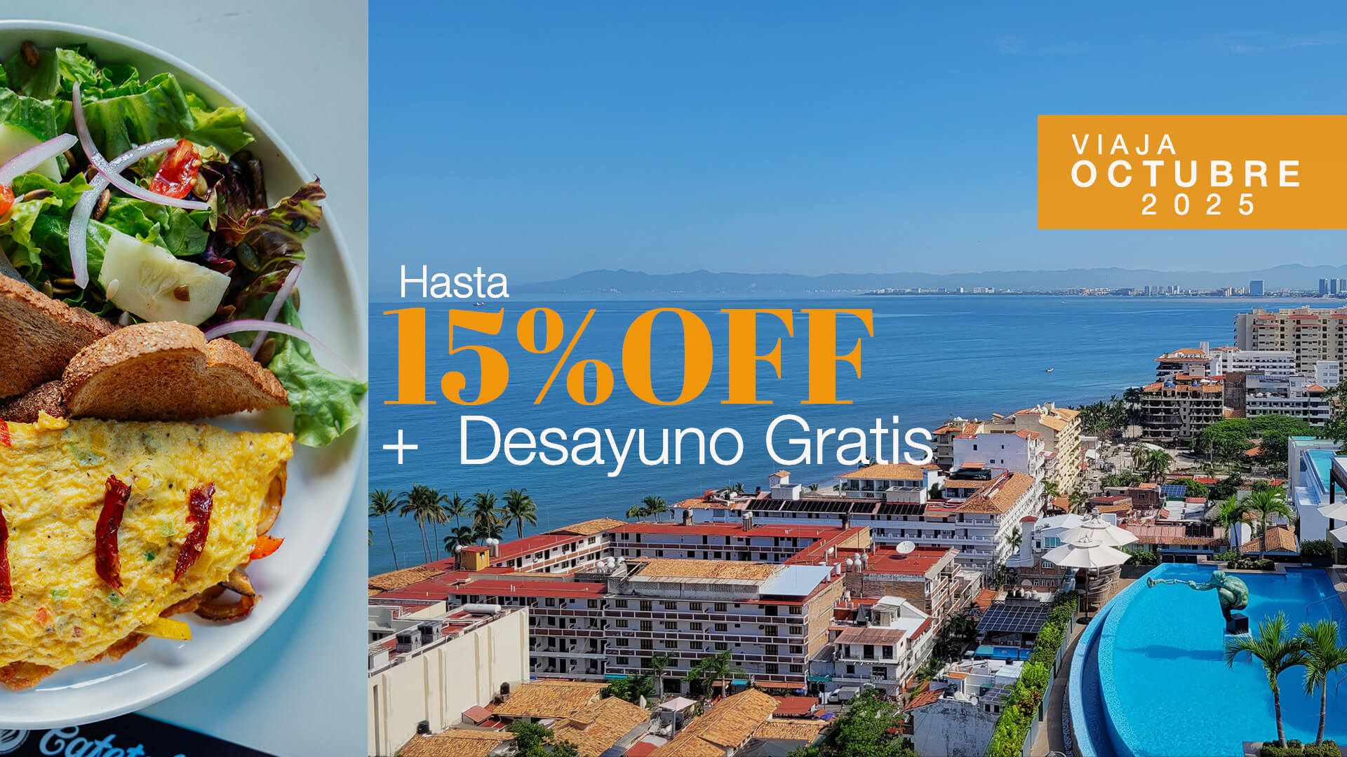 Disfruta hasta 15% de descuento + desayuno gratis en Pinnacle Resorts. Reserva tu viaje a Puerto Vallarta este octubre 2025 y vive el paraíso frente al mar.