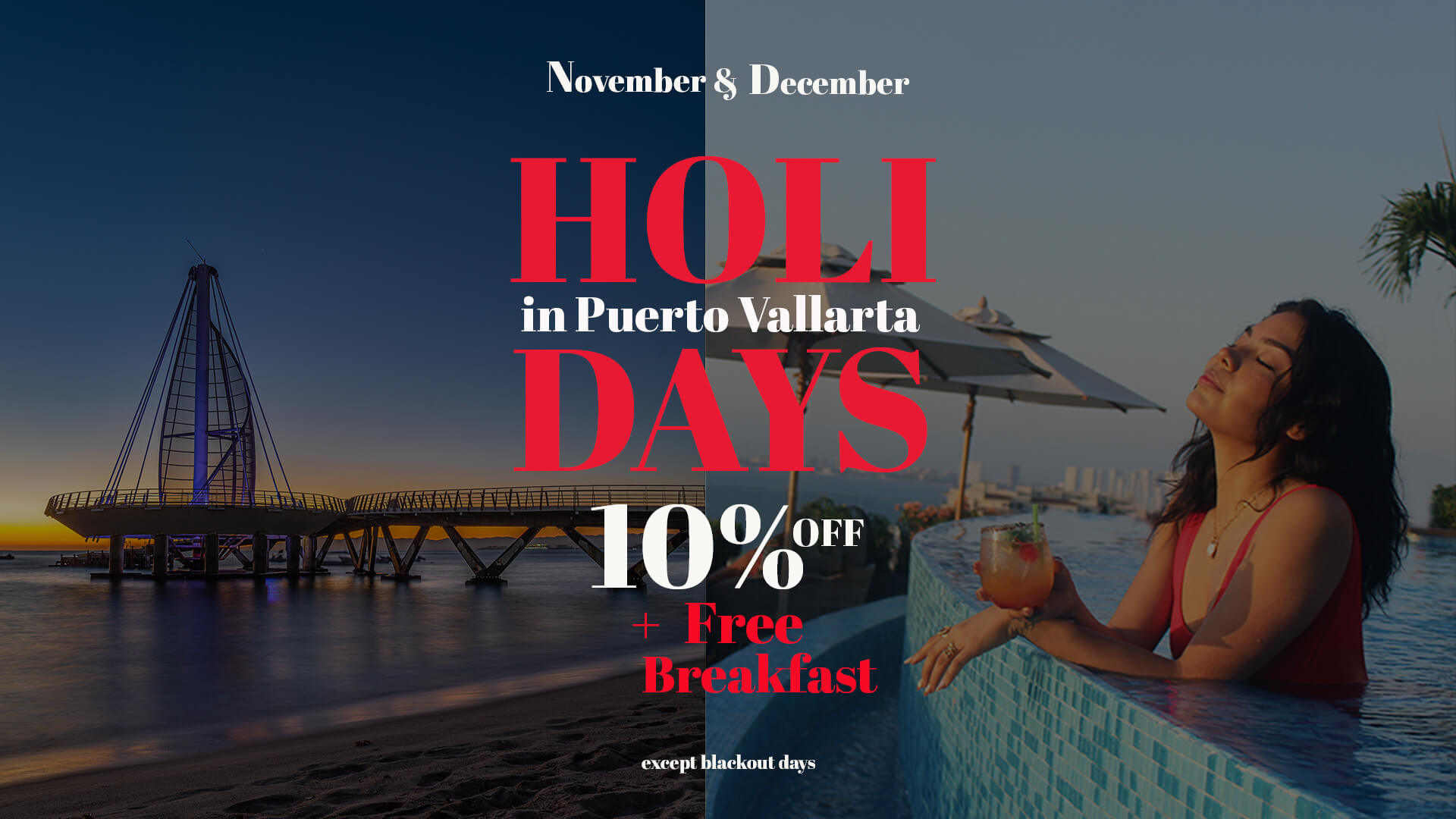 Escape to sunny Puerto Vallarta this holiday season! Enjoy 10% OFF your stay and wake up to a complimentary breakfast every morning.