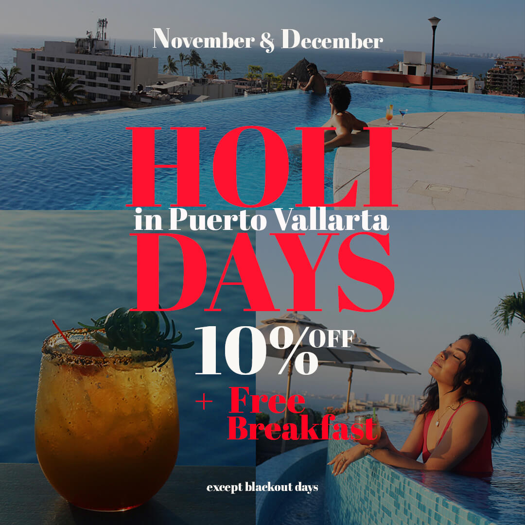 Escape to sunny Puerto Vallarta this holiday season! Enjoy 10% OFF your stay and wake up to a complimentary breakfast every morning.