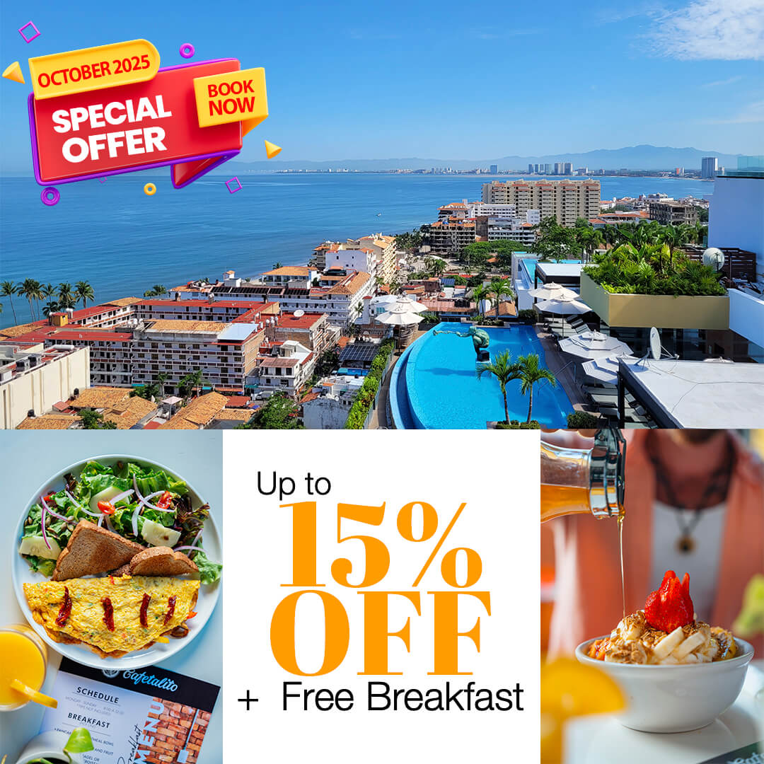 Enjoy up to 15% OFF + Free Breakfast at Pinnacle Resorts. Book your Puerto Vallarta getaway this October 2025 and experience paradise by the sea.